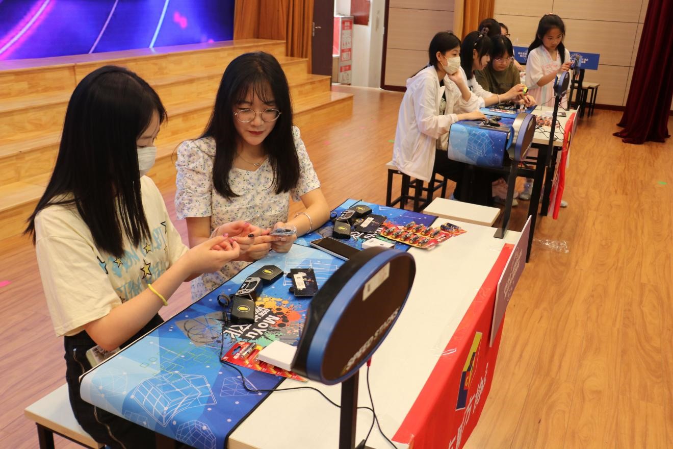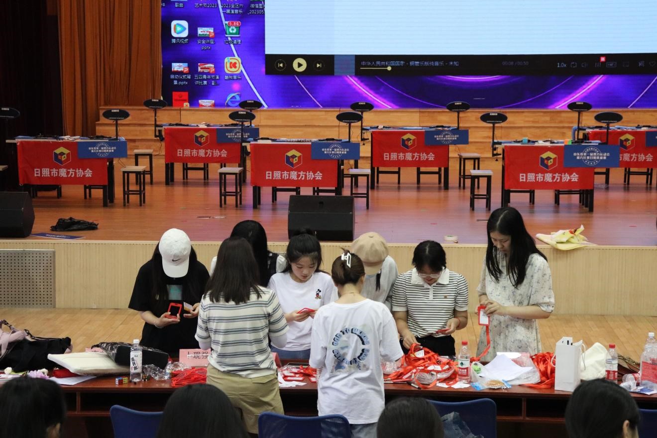 活动开始之前,志愿者们按时到达日照市魔方协会领取志愿服,并前往日照市山海天旅游度假区青岛路中学进行培训。首先,志愿者们按自身意向与情况选择分组,各组负责老师详细为志愿者们讲解各组具体职责,工作流程,并分派任务。随后,各负责老师带领志愿者体验各自安好大赛负责事宜,进行培训,为后续工作正常运行奠定坚实基础。彩排结束后,老师为志愿者们分发志愿者证与绶带,并预祝明天的公开赛顺利开展。