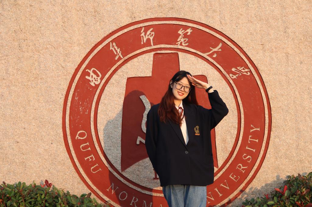 图为保研师姐在校徽石前