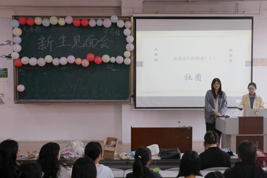 图为社团举行新生见面交流会