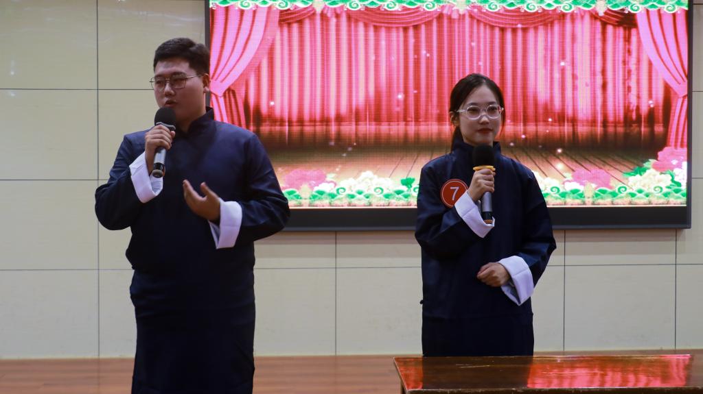 经过初赛的激烈角逐,八位选手从中脱颖而出,参加决赛的新一轮比试。本次大赛决赛共分为“模拟主持”“才艺展示”“即兴考核”三个环节,选手们按照抽签顺序依次上台表演。第一环节选手们选手按照抽签的顺序,借助PPT、视频等,讲述为时三分钟且有深意的故事。从“守岛人”王继才,到“燃灯校长”校长张桂梅,再到“逃出大英博物馆”的中华缠枝纹薄胎玉壶,选手用他们高超的主持技巧和深厚的语言功底向观众传达着故事中的情感与力量。第二环节选手及其搭档依次上台进行为时十分钟的才艺展示,演绎了一个个或感人或幽默的微场景,《相声必修课》的幽默风趣、《妈妈的味道》的暖心温馨、《忘不了》的含蓄深情和《努力没有错》的肯定激励都深入人心,赢得了台下观众的阵阵掌声。本环节结束后,根据前两轮比赛的得分选出五位优胜者,晋级第三环节。第三环节晋级选手现场抽取影音片段进行即兴评述,向观众传达视频及文字背后所蕴含的深刻寓意。活动最后,评委根据赛程设置的奖项顺序依次为获奖选手颁奖。