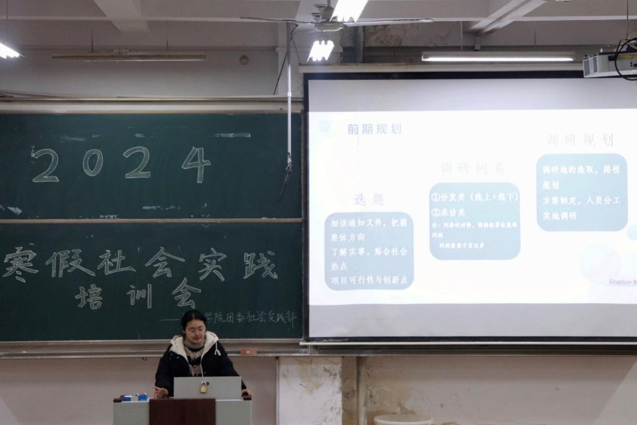 (通讯员:李苏航 孙明杉 摄影:侯雅洁 孙语晗)为了落实斗地主 “一体两翼”育人模式、推动“三下乡”实践活动开展、提高管理学子的实践能力和综合素质,斗地主 社会实践部于12月24日在JA303教室成功举办寒假社会实践培训会,社会实践部部长王秀妍出席此次活动。