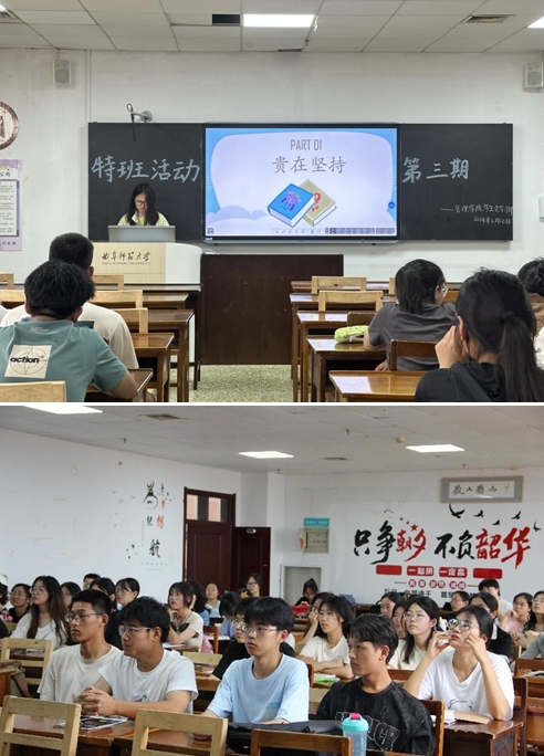 在本次活动中,高志远就公共课学习、专业课学习以及创新创业竞赛三大领域,详细地分享了他的学习策略与方法;王思淼则侧重于持续性学习、情绪调控以及身体健康等方面,深入讲解了她的经验体会;杜冰清和汪琳璐从日常学习安排、期末复习策略以及心理调适技巧等角度,为大家提供了宝贵的经验分享,并激励同学们要勇于面对挑战,共同成长进步;赵其斌分享了他独特的学习方法和技巧。整个交流过程中,同学们展现出极高的学习热情和互动积极性,相互学习借鉴,为同学们的学习方法与技巧掌握提供了借鉴。