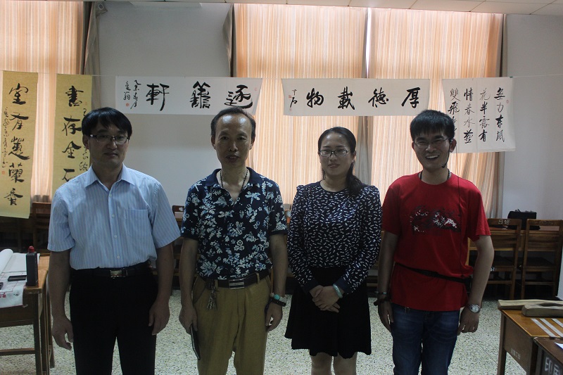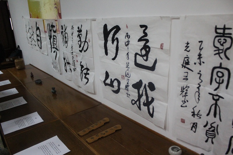 9:30,展览会准时开始。主持人首先向大家介绍了此次展览会展品的收藏者——王辉。王辉是我院2012级优秀毕业生,在大学四年的时间里担任2012级工商管理班班长,曾任我院13届学生会副主席。王辉学习成绩优异,多次在院校级比赛中获得奖励,收集文房墨宝作为他的一项兴趣爱好一直坚持到现在。此次展览中,一部分书画展品来自王辉亲笔创作,一部分是他的启蒙老师高秀平的得意之作,同时也不乏知名书法家的临摹作品。王辉带领大家一起观赏展出的书画作品,并向大家作详细的介绍。摆满展台的古代书房必备的物件让大家应接不暇,前来参观的同学们认真倾听,赞叹之声充斥着会场。展览会最后,高秀平老师现场提笔挥毫为大家题字,展览会在大家热烈的掌声中结束。