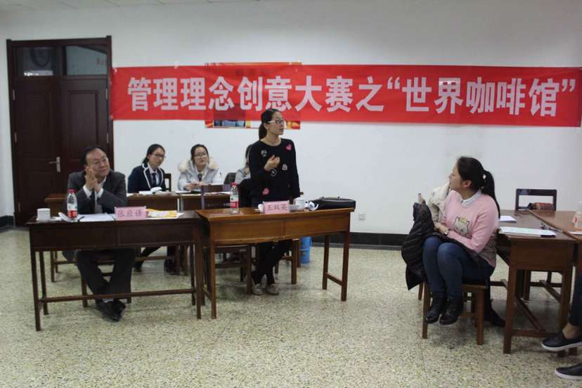 11月15日14:30,由我院团总支学生会秘书处举办的管理理念创意大赛之“世界咖啡馆”于JC607顺利进行。我院副教授王双英、讲师张应语担任此次大赛评委。