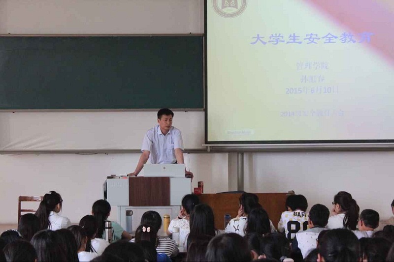 孙老师结合近期大学城内发生的数起安全事故,借助图文并茂的PPT展示,围绕消防安全、交通安全、人身安全和财产安全四个方面向同学们强调了校园安全问题。现在正处在毕业季,孙老师告诫广大学生“安全无小事,警钟要长鸣”,注意宿舍安全,做好防纠纷防暴力工作。赵书记在会上做了题为“你的大学开始了吗”的主题演讲。结合前几日2014级各班开展的大一生活满意度调查问卷结果,赵书记对学生们的生活状态做了定位。随后,从升学、就业、创业三方面,赵书记向大家阐述了当代大学生所面临的艰难出路,同时也提出“没有无用的课程,只有学不精的课程”这一观点,对广大2014级学生提出殷切期望,希望大家能够通过二三年级的突围,收获成功。