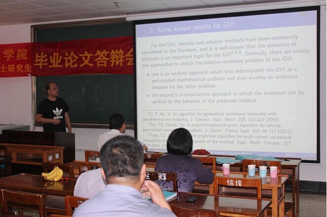 参加此次答辩的有我院2012级应用数学专业2名博士研究生及2012级23名硕士研究生(运筹学与控制论15名、系统科学4名、教育经济与管理4名),还有前来观摩的其他年级研究生。答辩会上,气氛激烈而又活跃,研究生们严密的逻辑、精彩的研究成果汇报给在场的专家们留下了深刻的印象。