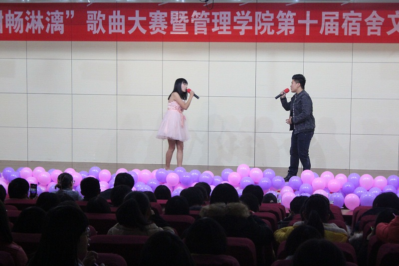 活动随着“啦啦操”的开始拉开帷幕,随后播放的VCR让观众对参赛的队伍有了初步了解,紧接着是参赛选手惊艳亮相。第一环节是两队成员PK时间,两队人员两两合作,按抽签决定的顺序依次登台进行表演。选手们动人的声音,甜美的歌喉将会场的氛围带向高潮。比赛过程中穿插的溜溜球表演则赢得了场下观众的阵阵喝彩,随后两队队长诙谐幽默的合唱更是赚足了观众们的眼球。第二环节则是上一环节胜出的选手以及复活的选手依次上台进行个人才艺展示,选手们各具特色的唱法,深情的演唱使会场的氛围再度达到高潮。观众互动环节“我爱记歌词”真正让管理学子们成为活动狂欢的参与者和创作者。决赛更是激动人心,三位选手出彩的表现,获得了观众的阵阵掌声,由信息科学与工程斗地主