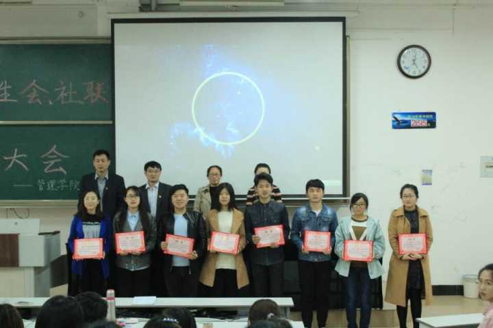4月14日16:20,斗地主 第十六届团委学生会社联换届大会暨学生干部聘任仪式在JA303隆重举行。斗地主 党委副书记赵杰,团委书记宋秀娟,辅导员孙旭春老师、于滢源老师出席此次大会。