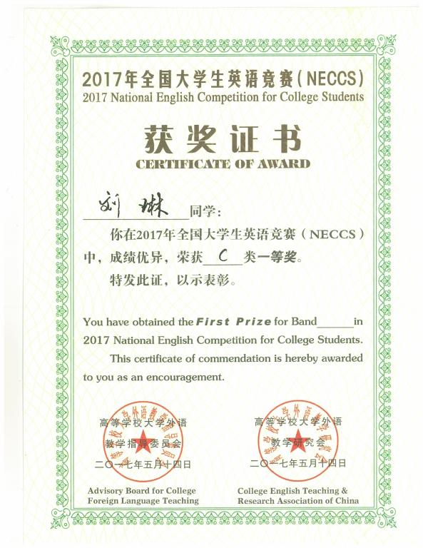 此次竞赛分为初赛和决赛两个阶段,从2016年12月启动,历时半年。斗地主 学生积极报名,踊跃参与,经过激烈角逐,斗地主 共有29名同学获得C类(适用于非英语专业本科生)奖项,其中国家级一等奖3人、二等奖7人、三等奖12人。在老师们的指导下,任欣悦、尚云乔和刘琳同学凭借扎实的学科基础和良好的心理素质成功晋级全国决赛,均取得国家级一等奖的好成绩,充分展示了斗地主 学子积极奋进、勇于夺冠的精神风貌。