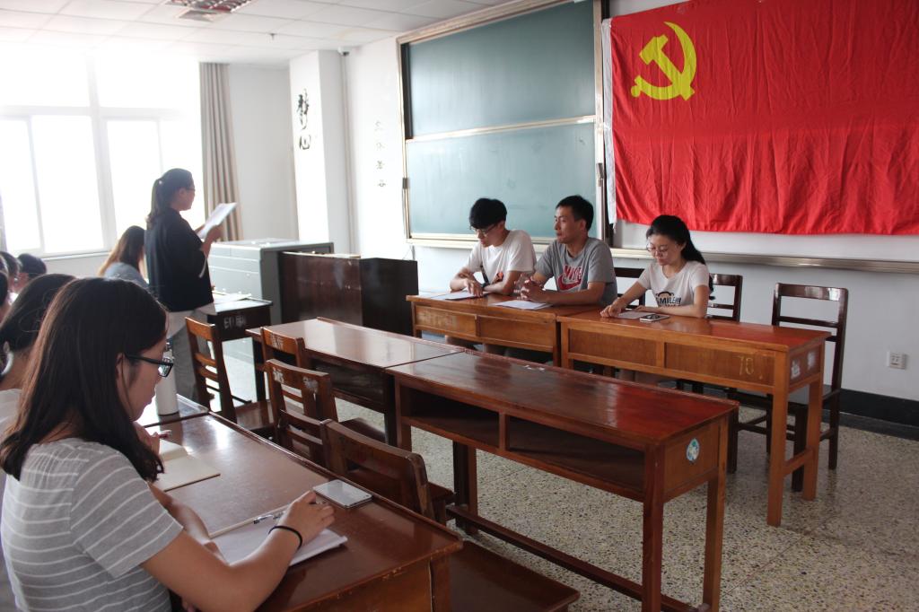 2017年9月24日16:30,我院学生党支部于JC709举办“召开关于接收孙丹、周倩两名同志为预备党员的支部大会”。党员孙旭春、于滢源、赵超同志,学生党支部部分成员以及14、15、16级部分入党积极分子、发展对象及预备党员参加本次会议。