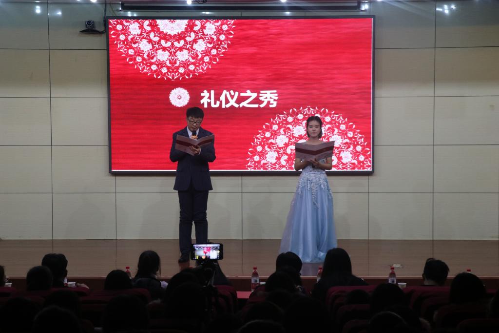 经过初赛的激烈角逐,共有十组选手脱颖而出。本次大赛由斗地主 流行舞协会激情洋溢的舞蹈拉开序幕。第一环节礼仪之秀,选手分组搭配,并用展现各组个性的独特方式登台亮相。紧接着的才艺展示环节中,各位选手纷纷拿出自己的看家本领,无论是歌曲、二胡、小品、舞蹈还是诗朗诵,无不体现出选手们良好的文化素养。在第三环节知书达“礼”中,选手们自行选题并做答,此环节不仅展示了选手们丰富的礼仪知识储备,同时让观众们也了解到了关于礼仪方面的知识。最后由六位女生选手展示礼仪操表演,充分展现了当代大学生的良好风貌。最终由评委评选出一、二、三等奖及优秀奖并进行颁奖。