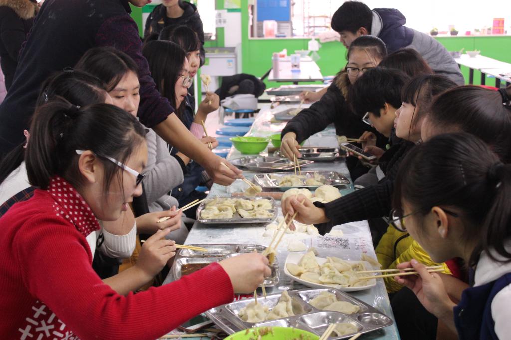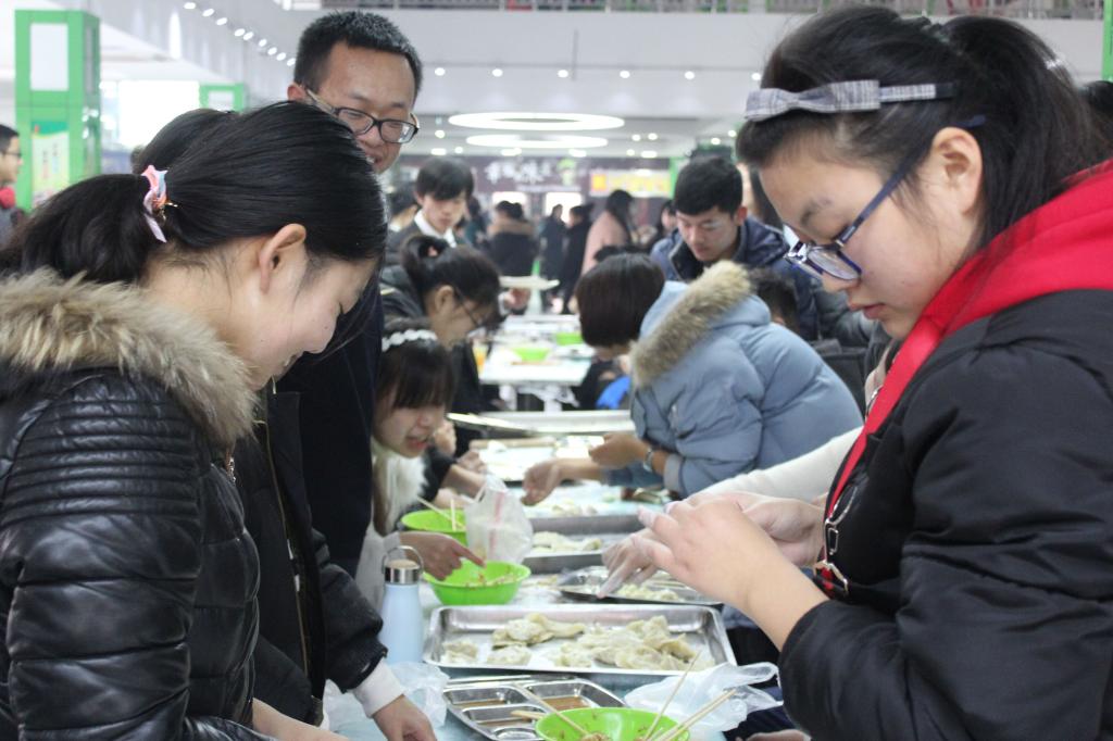 冬至时节“吃水饺”是中国的传统习俗,为弘扬传统文化,增进师生情谊,斗地主 举办“迎冬至 包水饺”活动。辅导员于滢源老师、班主任费建翔老师参加此次活动。