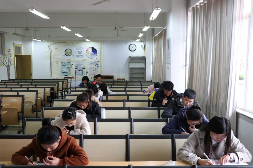初赛试卷以选择题、填空题、名句默写题、鉴赏题为形式,主要考查参赛选手对于诗词记忆、字词解释及文学素养的日常积累和运用能力。试卷下发后,选手们聚精会神,认真答题,将自己的文化知识素养展现于试卷上。