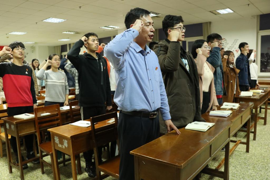 活动伊始,全体起立,共唱共产主义青年团团歌,开班仪式在嘹亮的歌声中拉开帷幕。紧接着,全体师生重温入团誓词,不忘入团初心,牢记作为一名团员的神圣使命,坚定为共产主义事业奋斗终生的信念。开班仪式上,孙旭春为此次“青马工程”培训班致开幕辞,他分别从学生干部的工作纪律、学生干部的思想引领以及未来工作的计划三个方面展开论述。孙旭春指出,持续加强“青马工程”建设是落实共青团部署要求、推进我校共青团建设的具体措施,也是拓展当代大学生实践锻炼的重要途径。孙旭春希望团干部要不断加强自身的思想素质建设,用马克思主义中国化的最新成果武装自己,做坚定的马克思主义拥护者和践行者;发挥好模范带头和引领示范作用,做政治坚定、德才兼备、素质全面、担当重任的“青年马克思主义者”,为我校的发展贡献出自己的力量。