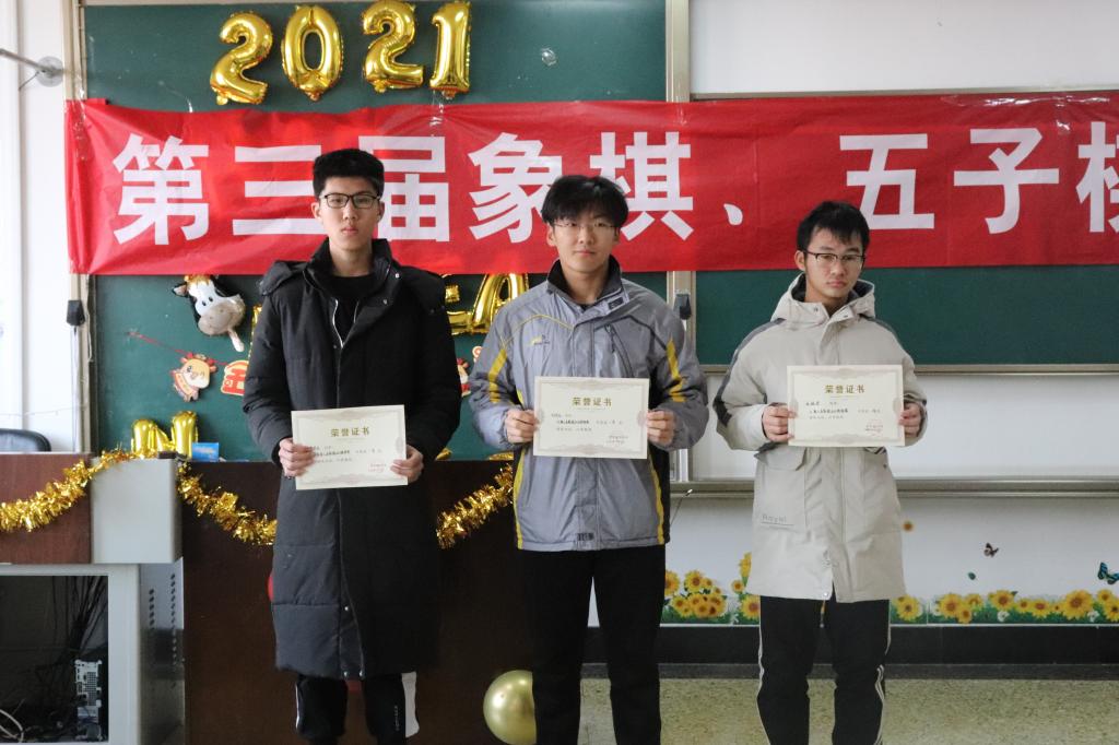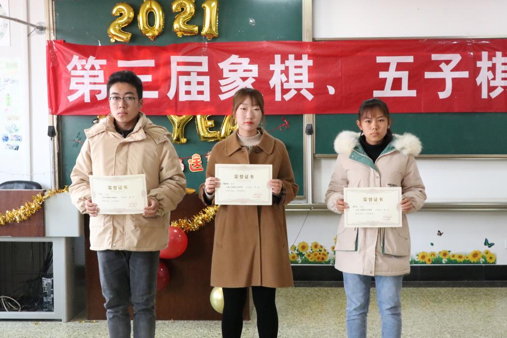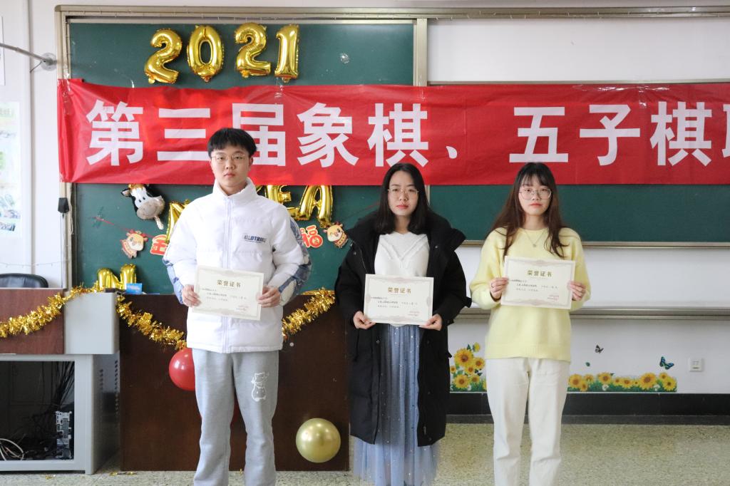联赛过程中,各参赛选手自觉遵守比赛规则,思维缜密、处变不惊,展现出卓越的博弈水平和高尚的体育精神。赛场上选手们沉着冷静、毫不畏缩,展现出良好的心理素质和品德修养。经过多周激烈的对弈角逐后,共产生7个获奖专业及33名获奖人员。2020级物流管理专业和2020级工商管理专业荣获象棋比赛专业一等奖,李德生、刘世达、杜振恩同学荣获象棋比赛个人一等奖。2019级财务管理专业荣获五子棋比赛专业一等奖,魏璐雅、李守富、杨梦帆同学荣获五子棋比赛个人一等奖。