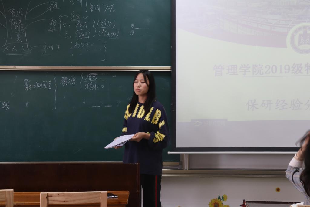 交流会伊始,王立新通过图示与讲解相结合的方式,生动地向特班成员介绍了日常学习方法、比赛获奖经验和保研成功心得;她提出,知识应该活学,在学习和比赛过程中摸索出一套适合自己的方法会大大提高办事效率;“条条大路通罗马”,在保研的路上要放宽眼界,多关注相关事宜,及时收集资料。随后,郑晓静从学习与发展方面与特班成员展开交流,她表示,在学习上要化被动为主动,积极参加各类比赛以丰富自己的生活履历;她强调,要及时了解比赛的相关内容和注意事项,并分享自己在各类竞赛中的制胜策略。