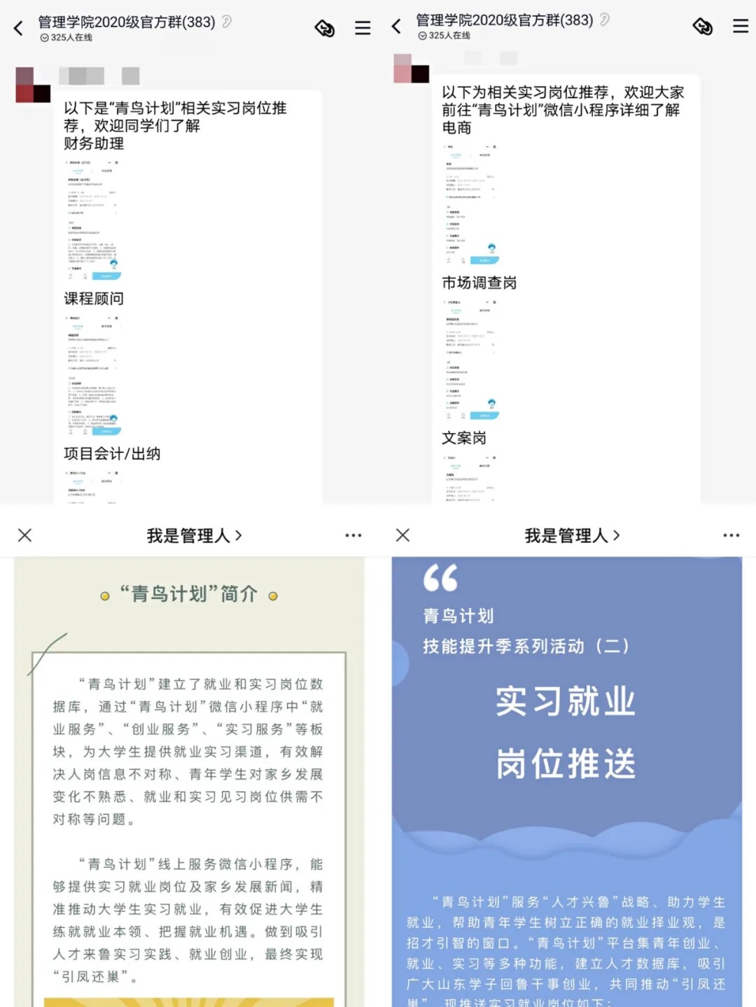 斗地主 就业服务部根据各专业特点和学生需求,搜集岗位招聘信息,进行归纳整理,并通过斗地主 官方群、团委微信及抖音等渠道就岗位名称、地市及岗位职责、任职要求、专业要求等相关信息进行推送,以便于学生深入了解各个岗位的需求和需要,助力就业。此次推送覆盖面广,专业性强,使得管院学子进一步了解“青鸟计划”中财务管理、工商管理、物流管理三个专业的专项实习及就业岗位,拓宽就业信息来源,有利于学生更好的认识自己所学专业的岗位需求,精准引导管院人才实习就业。