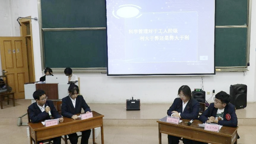 经过初赛和复赛的层层选拔,共有八支队伍成功入围决赛。本次决赛主要分为三个环节。在第一个环节“独具匠心”中,各团队依次上台,别出心裁,以PPT结合创意短视频或者情景剧表演等方式进行团队作品展示,他们精心准备、默契配合,用生动的表演、精炼的语言展开详细阐述。在每支队伍展示完毕后,评委老师针对他们的具体表现进行提问、点评,指出各团队中存在的问题并给予宝贵的建议。第二环节“对答如流”主要考察参赛同学的活学活用和随机应变能力,八个团队采取抽签作答的方式,运用管理学相关知识进行案例分析。各团队代表思路清晰、条理清楚、逻辑缜密,灵活运用所学知识解答各种难题,在短短几分钟内展现了自己深厚的语言功底和扎实的理论知识。第三环节“舌战群枪”中,两队代表根据辩题进行立论陈词,双方辩手针锋相对,唇枪舌剑,你来我往,却又不失风度,侃侃而谈,共同呈现了一场精彩绝伦的辩论比赛,赢得了台下观众的阵阵掌声。经过激烈的角逐和评委们公正的评判,最终,“知‘薯’达理”队脱颖而出,荣获一等奖。