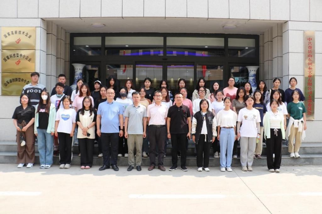 图为访企师生在企业前合影留念