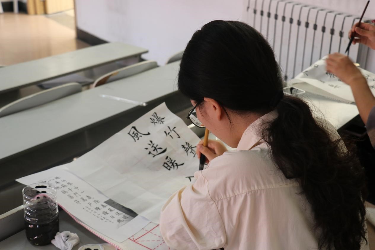 本次比赛共设钢笔字,毛笔字,粉笔字三个专项。大赛伊始,主持人向参赛选手们介绍了比赛规则和注意事项。随后,参赛选手根据自己报名的项目进入不同的教室参加比赛。选手们坐姿端正、握笔正确,毛笔笔法精妙,结字灵动;钢笔横平竖直,结构匀称;粉笔笔画规范,赏心悦目。他们全心投入、精心书写,于字里行间挥洒书写之豪气,尽其所能地展示自身的书法才能。最后,作品完成后由学习部成员拍摄留存并对所有未署名的书法品进行评分,每个项目选取前三名选手推荐进入校级比赛。