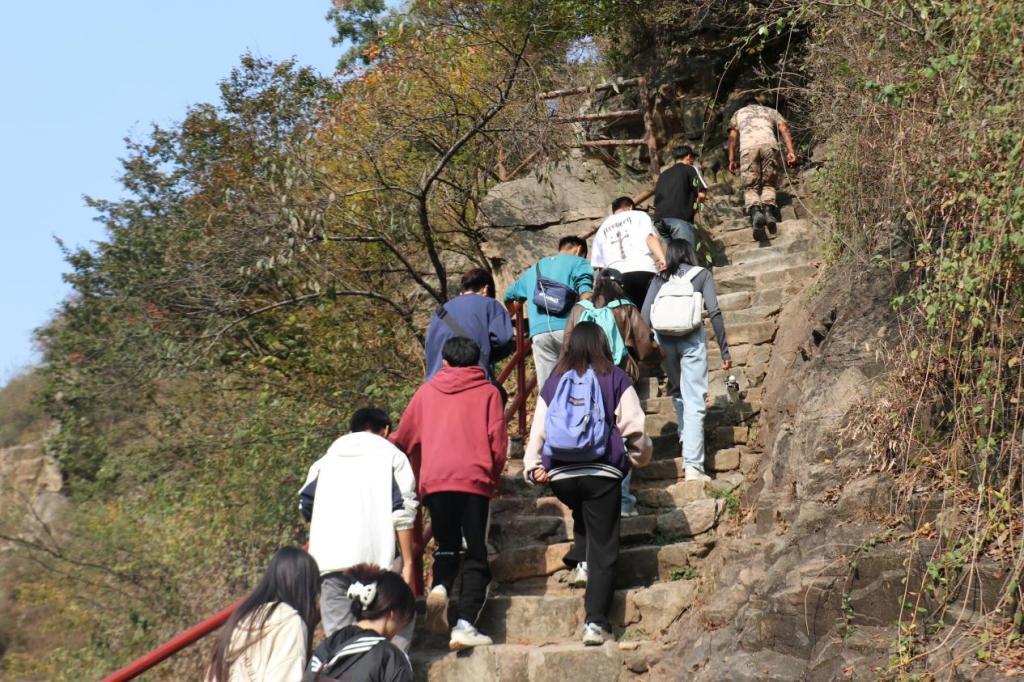 图为同学们前往龙潭大峡谷