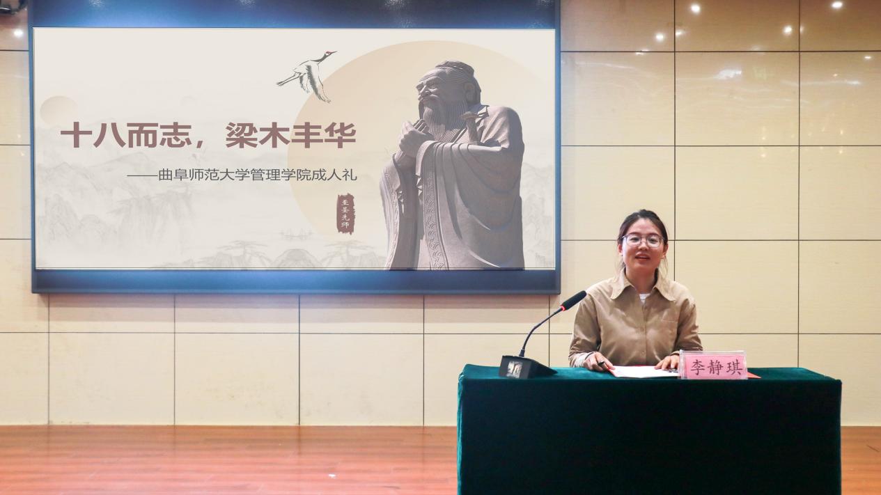 仪式初,李静琪为全体新生致辞,从成人礼的含义、起源和重要性三方面展开讲解,鼓励学生加深对中华传统文化的认知和感悟,铭记历史、胸怀天下,树立正确的世界观、人生观、价值观。此后,参礼学子面朝至圣先师孔子之像行三番冠笄之礼。礼毕,在学生代表王健的带领下,以中华人民共和国公民的身份,全体同学在十八岁成年之际庄严宣誓,立志成为有理想、有道德、有文化、有纪律的社会主义公民。誓词铿锵有力,振奋人心。在仪式末尾,以冠笄礼学子代表发言作结,宣布本次斗地主 成人礼圆满结束。仪式过程中,管院学子专注认真,现场庄重严肃。
