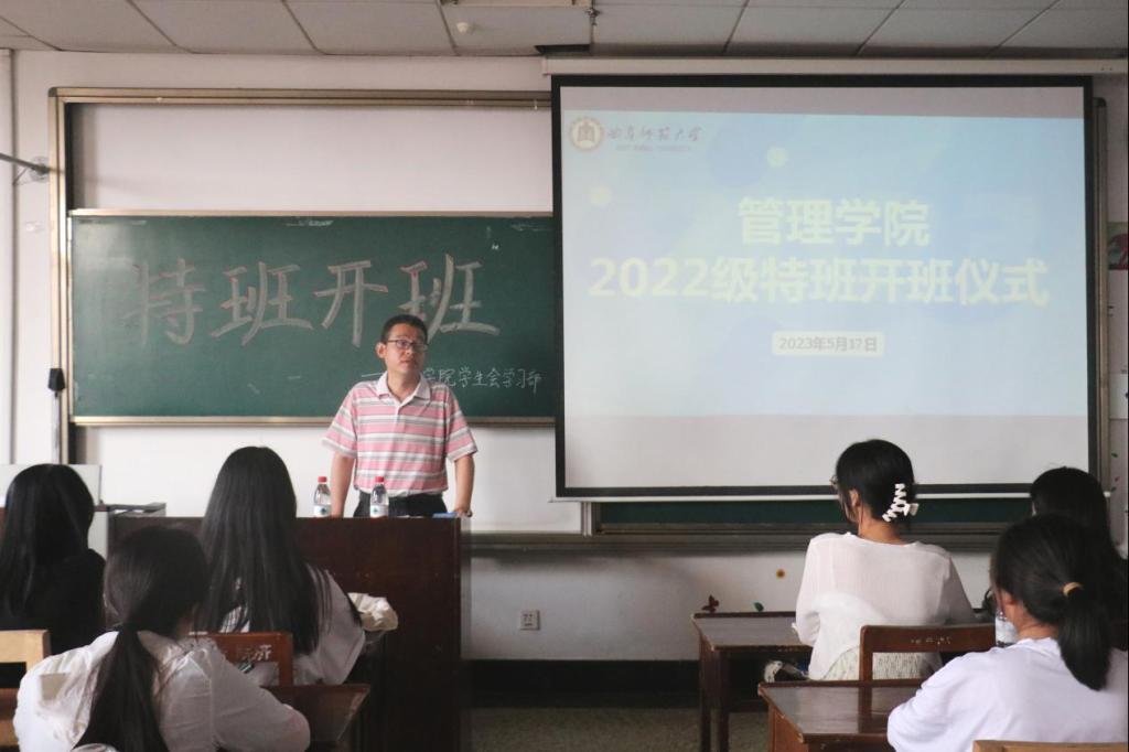 (通讯员:卞叶童 孙琬婷 韦如倩)2023年5月18日下午,斗地主 2022级特班开班仪式暨第一期活动于JC607顺利举办,该活动由斗地主 学习部承办,斗地主 党委副书记刘洪铎及2022级辅导员董晓宇出席本次活动,2022级特班全体成员参加。