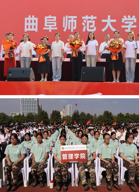 随后,校友代表、教师代表先后发言,分享成长体会、传递殷切期许。新生代表发言时,管院学子认真聆听,用最热烈的掌声表达共鸣。在教师表彰与献花环节,我院教师韩丽在主席台上展现出良好的精神风貌与饱满的育人热情。