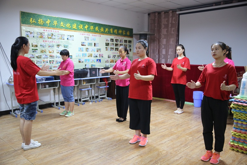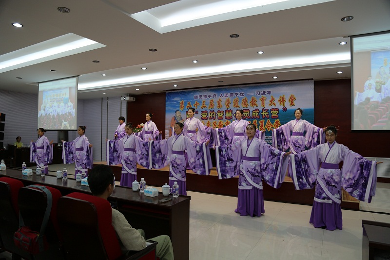“文化之旅”三下乡服务队自集队以来,便投入到了紧张有序的工作准备状态,队员们分工合作、各司其职。7月27日至30日期间,队员们统一进行了手语操培训,三天之内学习了《礼》、《跪羊图》、《厚德载物》等十余首手语操。与此同时,队员们也积极加入到黄河大放生的队伍中,在队员们的帮助下,一条条鱼儿重获自由,再返黄河。7月30日至31日,跟随主办方到达夏令营主讲阵地-垦利一中后,队员们迅速投入到了忙碌而又充实的会场准备工作。准备工作完成不久,队员们便开始引领学员们进行夏令营的报道工作,引领期间不忘耐心帮其答疑解惑。8月1日至8月6日,夏令营开课时间,表演手语,食堂打饭,准备茶水,打扫卫生等类似的事情每天队员们都会上演。虽然其间睡眠时间少、工作量大,但是队员们累在其中,乐在付出。汇报演出时,队员们身穿汉服,为学员们献上了一出大气磅礴的汉唐歌舞《重回汉唐》,衣袂飘飘,矫若游龙,博得了学员们的阵阵掌声与欢呼。6日至7日,送走了全体学员们后,队员们有条不紊地进行着夏令营的收尾工作,同时,也迎来了此次“文化之旅”三下乡社会实践的尾声。