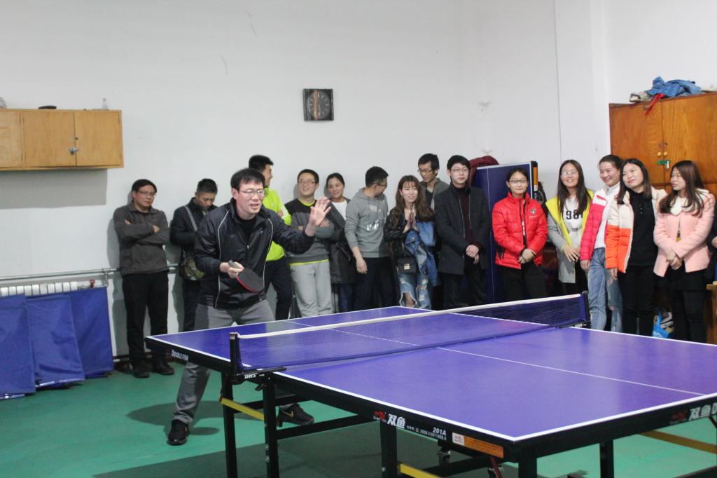 本次联谊赛为混合团体赛,包括男单(第一场)、女单(第二场)、男双(第三场)、女双(第四场)、男单(第五场)、男单(第六场)、混双(第七场)七场比赛,每场比赛采取三局两胜制。由我院党委书记王刚、副院长王宜举等导师代表和孙军、陈友花等研究生代表组成了一支强劲有实力成的师生代表队。在比赛过程中,运动员们积极拼搏,为我们上演了一个又一个精彩的扣球、旋转球等,完美的演绎了乒乓球的弧线。历时五天的精彩角逐,该比赛在3月31号圆满的结束。经过老师和学生的互相配合,奋勇拼搏,我院取得了优异成绩。