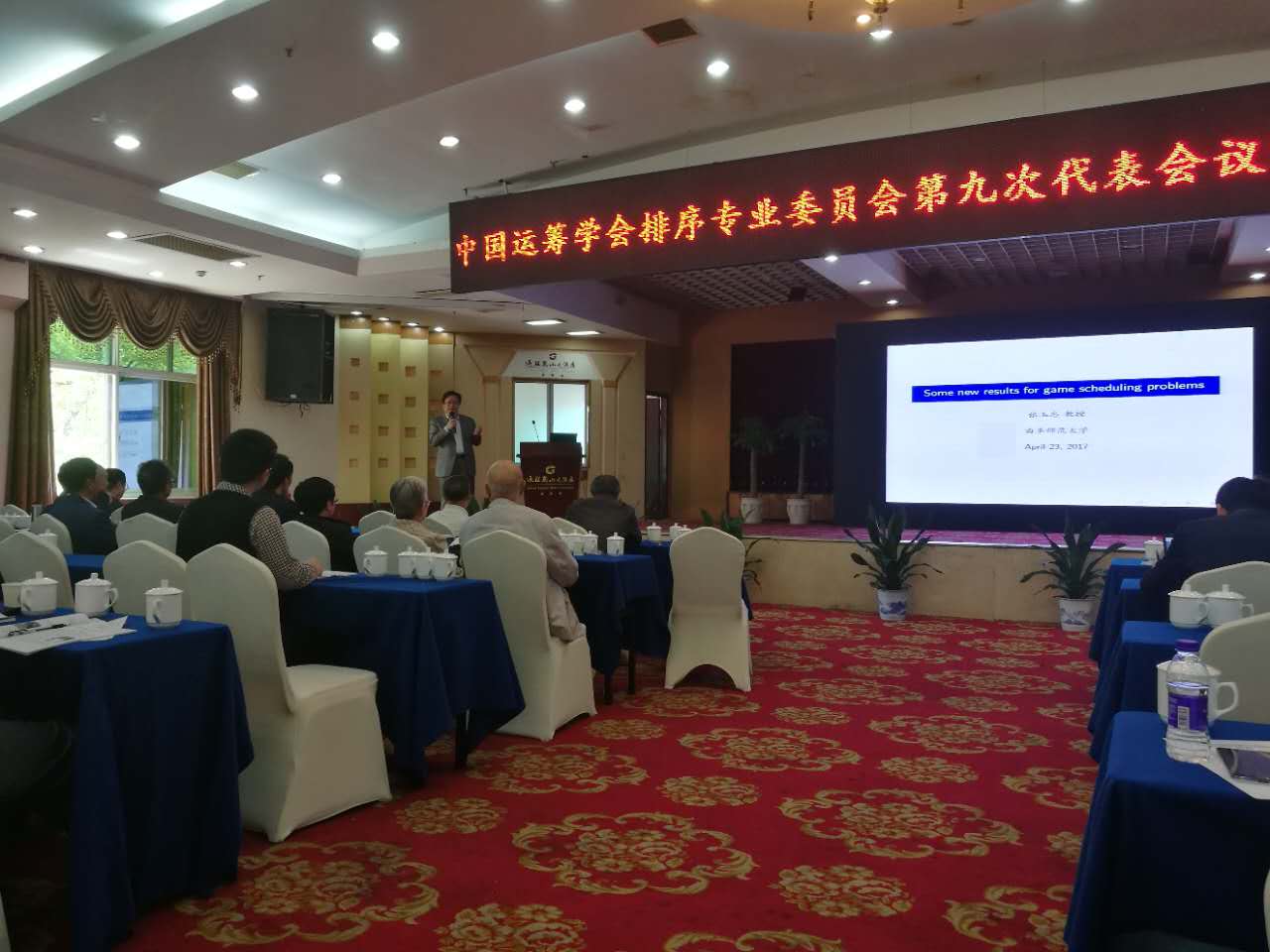 来自中国科斗地主 、清华大学、香港科技大学、浙江大学等高校和科研研究所的260余名专家、学者参加了本次会议。与会专家围绕排序论、智能算法与组合优化等研究举行学术报告50余场,交流了各自的最新研究成果。我校斗地主 张玉忠教授作为特邀大会专家做了题为《Some new results for game scheduling problems》的大会报告。这一博弈排序领域最新研究成果的介绍,拓展了参会代表的研究思路并得到了代表的一致好评。