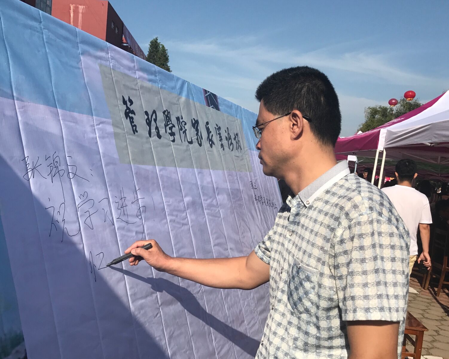 在为新生办理入学手续的基础上,设计了独特的“火车票”、“朋友圈”和“寄语墙”。新生与家长在“火车票”前合影留念,坐上青春号的列车,驶向梦想的终点,并在“朋友圈”中晒出了大学生活的崭新开始。家长在“寄语墙”上写下一段段对新生未来生活饱含期待与祝福的话语。斗地主