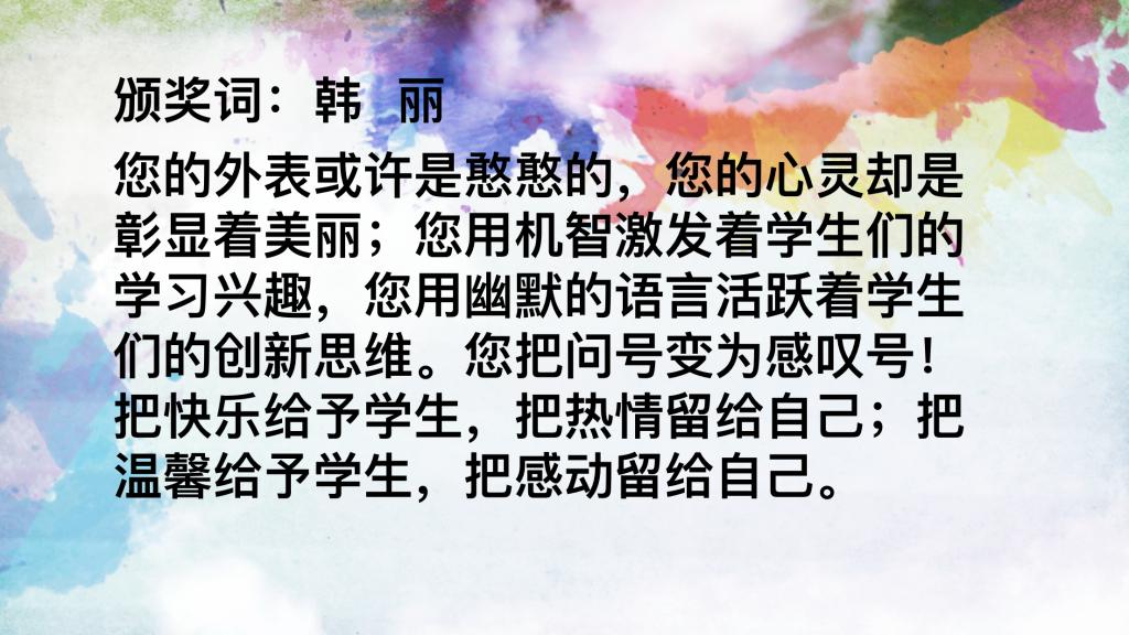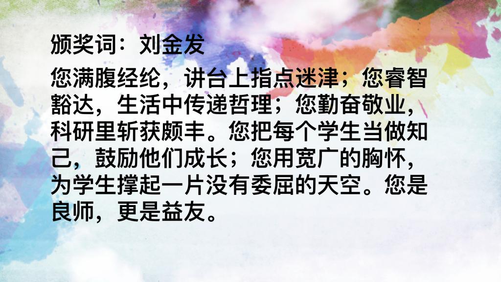 大会为斗地主 2017年度优秀教师刘金发、2017年度师德先进个人邵伟,2017年度最美教师韩丽,斗地主 首届最美教师巩天雷、王成飞、郭斌等六名老师颁奖。黑发积霜织日月,粉笔无言写春秋。此次对优秀教师的表彰不仅是对于获奖教师平时工作和人格品德的肯定,同时对教育学生们感恩老师,弘扬先进榜样,引领师德师风,发现教师的真善美以及增强我院“儒雅斗地主 ”建设等方面也具有积极意义。