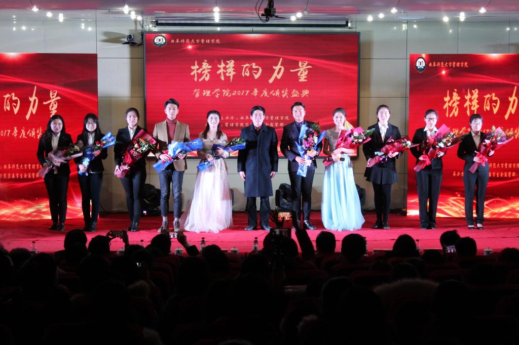 颁奖典礼上,优秀学子神采飞扬。上百名优秀个人、优秀集体得到表彰,包括:全国大学生数学竞赛国家赛区一、二、三等奖获得者,山东赛区一、二、三等奖获得者;全国大学生数学建模竞赛全国二等奖团队,山东省一、二、三等奖团队;全国逆向物流设计大赛国家级优秀奖获得者;大学生财务决策大赛北区三等奖获得者;第八届山东省大学生创新创业大赛省级三等奖团队;暑期“三下乡”社会实践国家级优秀队伍和国家级优秀报道奖队伍;“挑战杯”全国大学生课外学术科技作品竞赛省级一等奖团队;国家奖学金获得者、省政府奖学金获得者、山东省优秀毕业生,国家级科技创新项目获奖团队,荣获全国英语竞赛国家级一、二、三等奖的学子,以及高分通过雅思考试的同学。此外,还表彰了山东省优秀班集体、斗地主 十佳百优班级、斗地主 十佳学子、学霸宿舍、文明宿舍、科创宿舍、文体宿舍、军训优秀标兵、优秀运动员、三好学生标兵、优秀学生干部、年度专业之星和年度人物。张玉晶、王丽、吕文蓉、王永霞、王玉杰、袁媛等优秀学子代表先后发言,道出对师弟师妹们的殷切希望:在前进的道路上,要永葆自信和激情,见贤思齐,刻苦奋斗。期间,还呈现了歌曲、舞蹈、手语操、微话剧、诗朗诵等才艺展示。