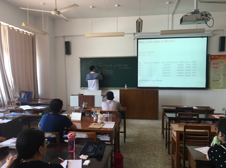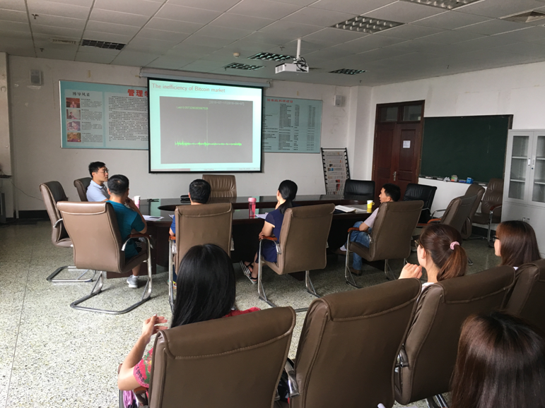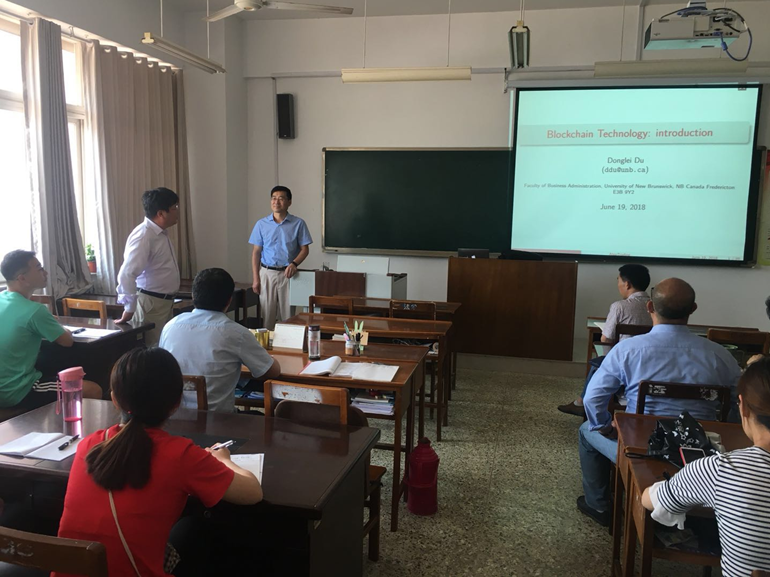 浏览量: 更新日期:2018-06-236月20日—6月22日,加拿大新布朗什维克工商斗地主 副院长杜东雷教授应运筹学研究院邀请来斗地主 ,做了题为“BlockChain Technology”的系列专题讲座,本专题讲座以比特币为主要事例,介绍区块链技术的基本概念,机制及应用。讲座由斗地主 运筹学研究院院长张玉忠教授主持。