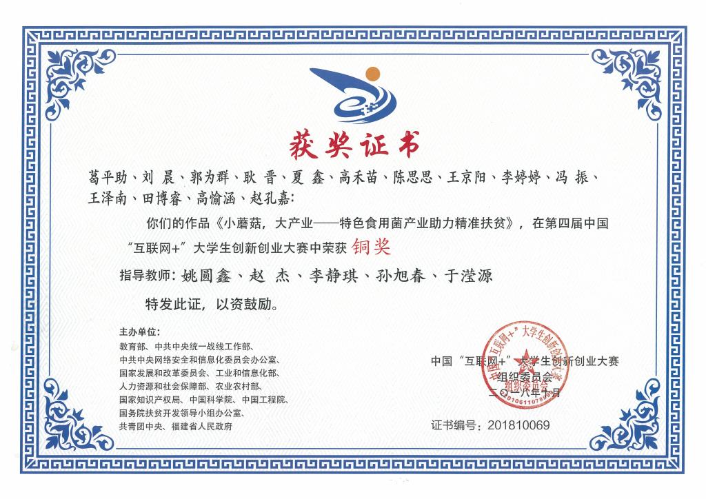 日前,第四届中国“互联网+”大学生创新创业大赛评审结果出炉,我校斗地主 大学生创业项目《小蘑菇,大产业——特色食用菌产业助力精准扶贫》荣获国家铜奖,实现斗地主 乃至学校在该项赛事获奖“零”的突破。