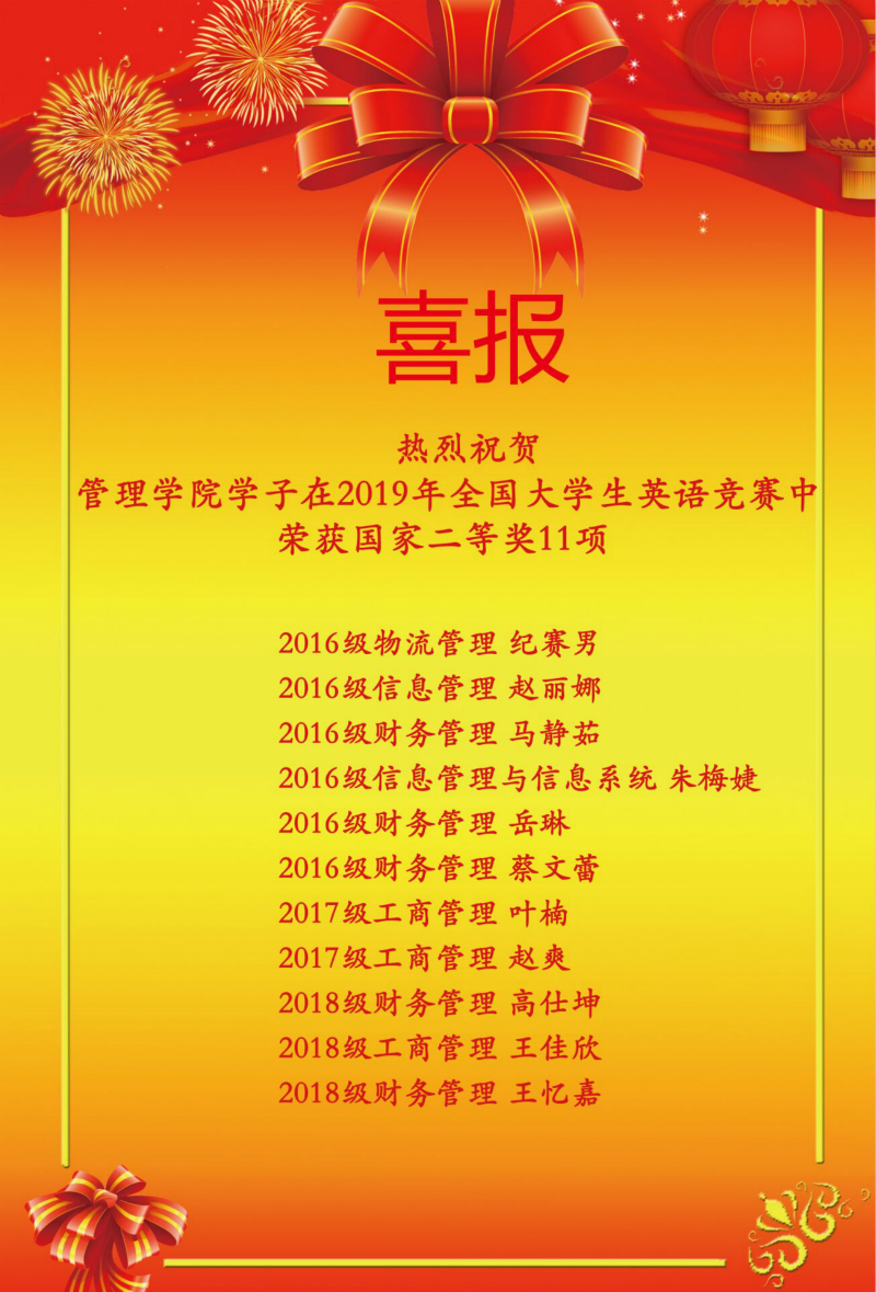 我院学子在2019年全国大学生英语竞赛中喜获佳绩