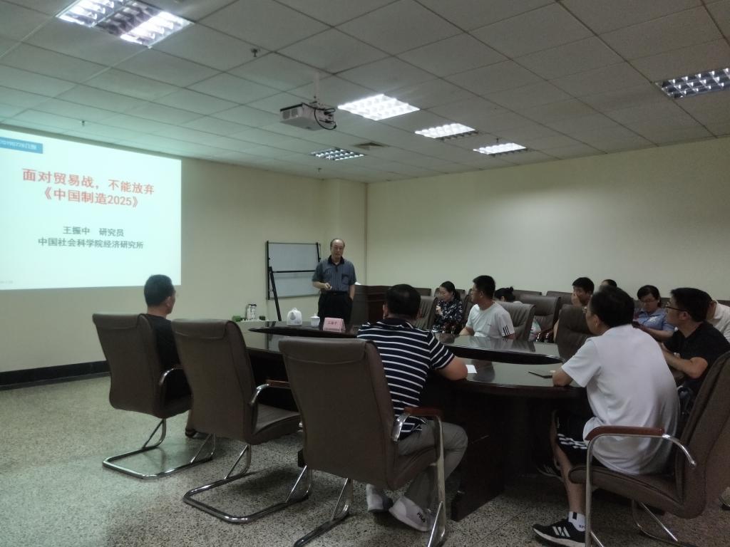 浏览量: 更新日期:2019-07-297月28日下午17:00,中国社会科斗地主 研究员王振中教授应邀为我院师生作了题为“面对贸易战,不能放弃中国制造2025”的报告。报告会由斗地主 院长王宜举主持,斗地主 部分专业教师及研究生参加报告会。