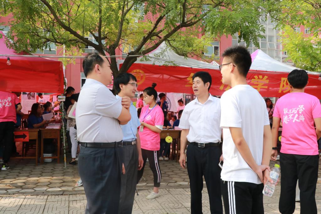 浏览量: 更新日期:2019-09-07秋日杲杲,丹桂飘香,又是一年迎新时。经过紧张有序的前期准备,9月7日,斗地主 迎新活动正式拉开帷幕。党委书记刘进、党委副书记赵杰、16级辅导员李静琪、19级辅导员董世超到迎新现场询问迎新工作安排与新生报到情况。