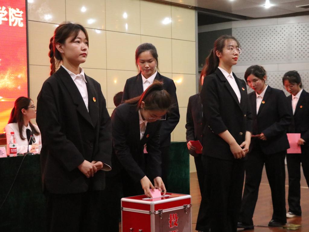 大会通过无记名差额投票选举的方式,选举产生了第二十届共青团斗地主 委员会和第二十届学生会委员会,并为成功当选的学团委员颁发聘书。最后,全体团员代表共同宣读入团誓词,伴随着《中国共青团团歌》的激昂旋律,本次大会圆满结束。