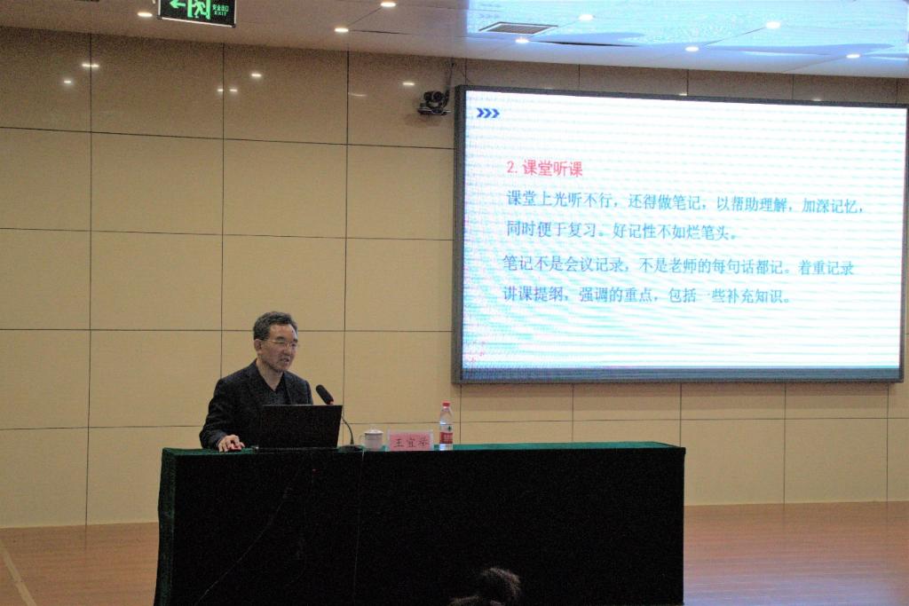此次主题报告中,王宜举院长分别从学习的关键、课堂学习、读书、记忆和自学五个方面对学习的方式方法展开了详细讲解。首先,院长王宜举引用 “学而不思则罔,思而不学则殆”道明学习的关键在于思考,并进一步告诫同学们要把学习与思考紧密结合,主动学习,勤于动脑,只有如此,功夫方可落实到实处。随后,在课堂学习方面,他讲到,课前应有效预习课本内容,课堂上应认真听讲,课后要通过习题和总结的方式进行及时巩固。在谈到读书时,他强调阅读要有选择性,通过阅读经典名著挖掘深刻内涵,将书本“由薄变厚”再“由厚变薄”;在记忆方面,他向同学们介绍了用心记忆法、重复记忆法、系统记忆法、特征记忆法、联想记忆法5种记忆方法,并结合相关案例用诙谐幽默的方式表达了对同学们的殷切期盼;在自主学习方面,他希望同学们可以具备学习知识、运用知识、创造新知识的能力,并能够在此过程中不断提出新观点、新方法。最后,王宜举院长表示,学习方法很重要,别人的方法可以学习借鉴,但更重要的是找到适合自己的学习方法,然后加倍努力。