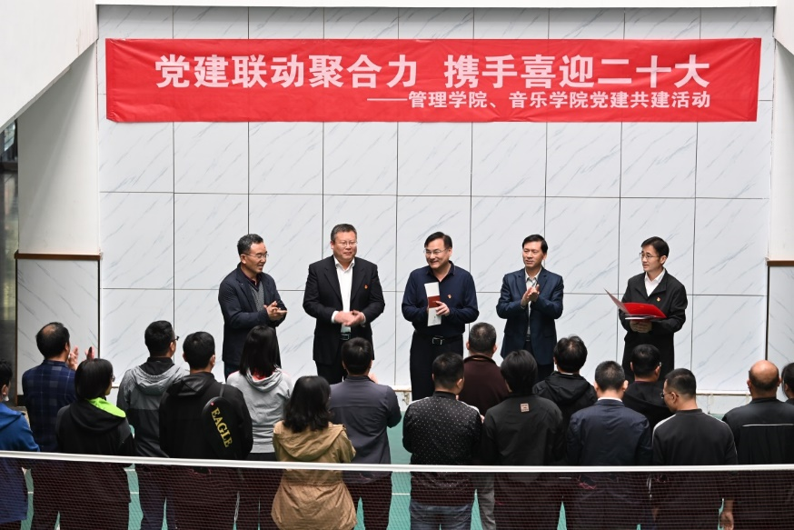 浏览量: 更新日期:2022-10-10为深入贯彻落实学校第九次党代会精神,充分发挥党建引领作用,构建结对联动、双向促进、共同提高的党建共建新格局,10月7日下午,斗地主 党委和音乐斗地主 党委举行了“党建联动聚合力,携手喜迎二十大”党建共建活动。学校党委常委、副校长陈刚出席,斗地主 和音乐斗地主 领导班子成员及部分师生党员代表参加了此次活动。活动启动仪式由音乐斗地主 党委书记谢仕兴主持。