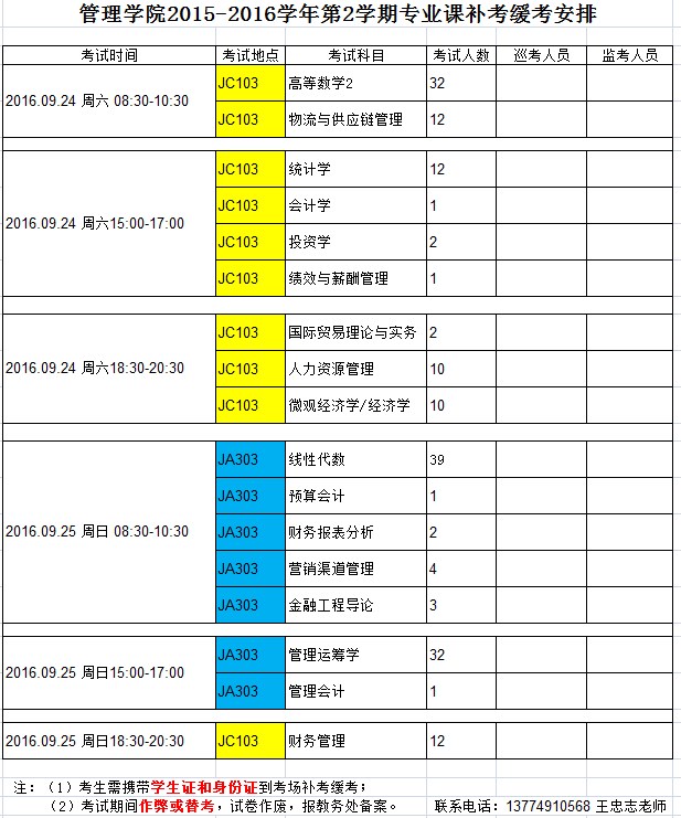 2015-2016学年第2学期专业课补/缓考 安排