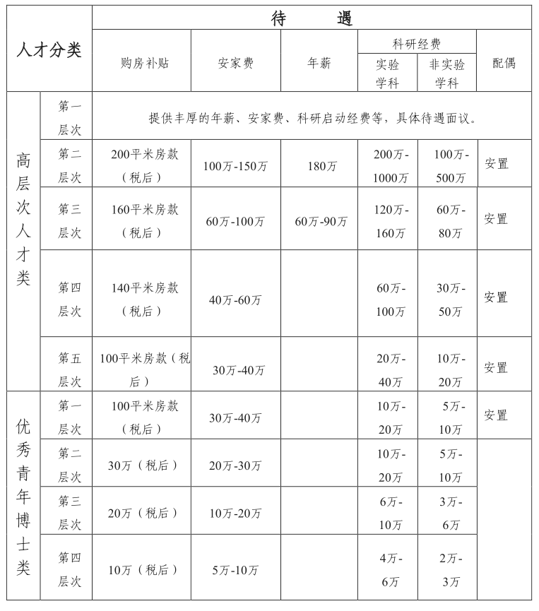 人才引进的分类、条件及待遇