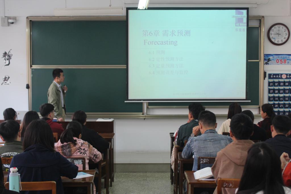 10月27日9:00,王成飞老师于JC103举行斗地主 青年教师公开课第九讲——《生产运作管理-需求预测》。课堂初始,王成飞老师以常见现象为导入点,引入课堂内容。在课堂上,王老师积极与学生互动,同学们也积极响应。在提问过程中,同学们积极思考,踊跃发言,课堂气氛十分活跃。在王老师的课堂上,学生是课堂的主体,这种以学生为主的教学方式让同学们更容易接受和掌握课堂内容,更好地汲取知识。