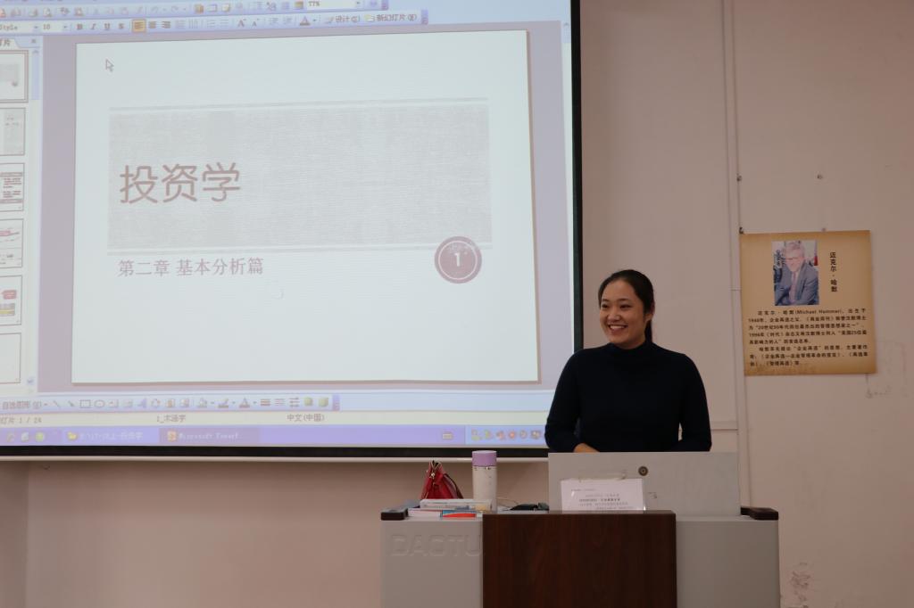 11月3日上午9:00,王帆老师在JA301举行斗地主 青年教师公开课第十一讲。本次课程所讲的内容为《投资学——公司价值分析》。王老师以茅台的案例为切入点,引出FCFE模型。随后,王老师重点讲解了该模型的原理和计算公式,并通过案例循循善导,让同学们进一步掌握知识。讲课过程中,王老师精神饱满,声音温柔,将书中苦涩难懂的文字转变成一个个鲜活有趣的画面,让课堂富有活力。